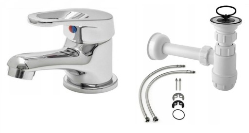 W komplecie bateria umywalkowa, syfon, zestaw przyłączeniowy.