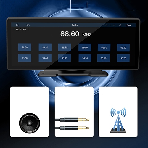 When a 3.5MM audio cable is inserted, the sound can be transmitted to the original car radio horn through the data cable. The original car radio is required to support AUX input.