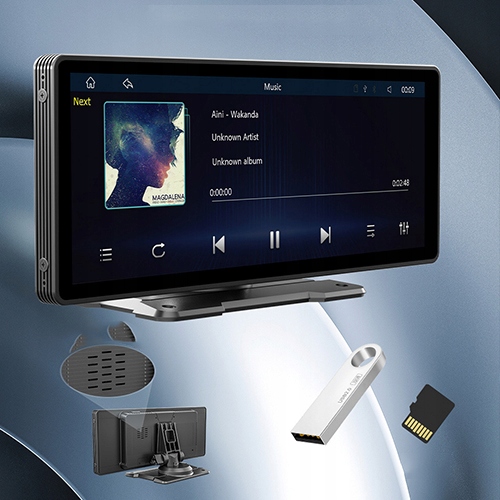 Ten radioodtwarzacz samochodowy, kompatybilny z Apple Carplay, ułatwiający dostęp do funkcji iPhone'a, w tym muzyki, nawigacji po mapach, połączeń, powiadomień, wiadomości i wielu innych