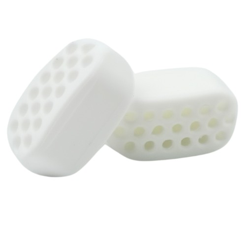2. Następnie umieść po jednym elemencie ćwiczącym żuchwę o tej samej sile po obu stronach buzi między zębami i mocno ugryź.