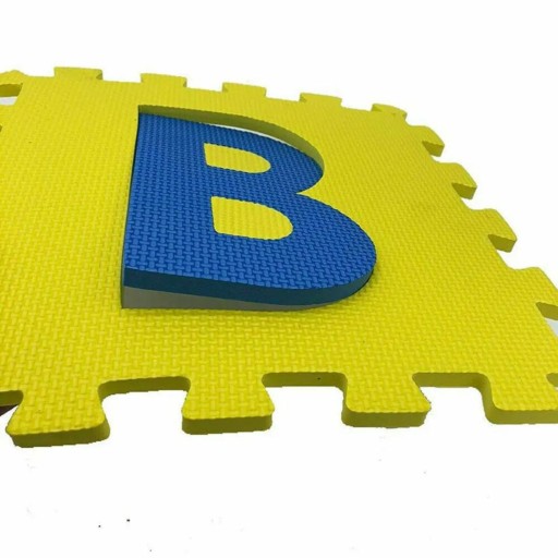 Zestaw składa się z 26 puzzli z których można ułożyć matę na podłogę chroniącą przed zimnem oraz amortyzującą upadki lub zbudować figury przestrzenne np. kostkę. Puzzle posiadają wyjmowane literki alfabetu, dzięki czemu maluszek uczy się dopasowywać kształty.