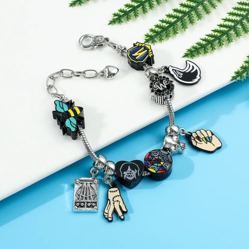 Bransoletka charms została starannie wykonana z wysokiej jakości materiałów, aby oddać każdy detal charakterystyczny dla serialu Wednesday. Symbolika i estetyka biżuterii nawiązuje do magicznego świata, w którym Addams prowadzi tajemnicze śledztwa.