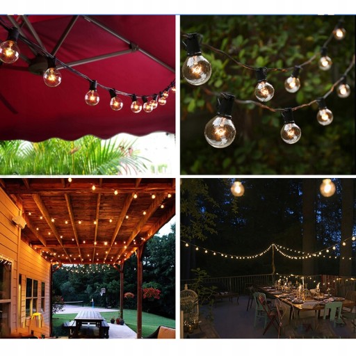 【Łańcuch świetlny na zewnątrz z 30 żarówkami】 Ta bajkowa lampa składa się z 30 wysokiej jakości wodoodpornych żarówek o łącznej długości 920 cm, z odległością między dwoma żarówkami 30,5 cm. Może stworzyć przytulną i świąteczną atmosferę dla Ciebie i Twojej rodziny. Nadaje się na ślub, urodziny, boże narodzenie, Halloween, dekoracja wnętrz na zewnątrz