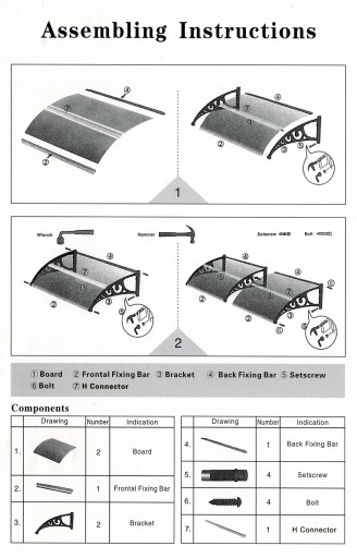 1*daszek do samodzielnego montażu wraz z materiałem montażowym (2 wsporniki, 2PC deski, 2 profile aluminiowe, jeden komplet śrub).