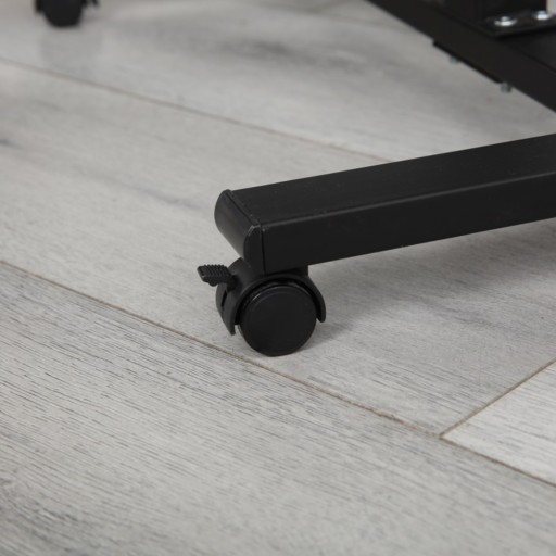 Stojak na laptopa ma cztery solidne kółka, które umożliwiają łatwe przenoszenie wózka TV z jednego miejsca na drugie; wbudowany zamek pozwala, aby biurko na laptopa pozostawało nieruchome lub przesuwane.