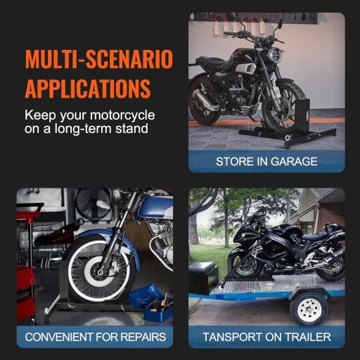 regulowane dopasowanie wielostopniowe: dzięki funkcji regulacji z 6 otworami można łatwo dostosować klin pod koła, aby pasował do różnych rozmiarów opon motocyklowych. zapewnia to bezpieczne dopasowanie i zapobiega przewróceniu się motocykla. jest korzystny do bezpiecznego trzymania motocykli terenowych.do większości motocykli: kliny pod koła motocykla charakteryzują się wyjątkową wszechstronnością, mieszcząc koła o średnicach od 15 do 22 cali (381–558,8 mm) i szerokości opon od 3 do 8 cali (76,2–203,2 mm). nadaje się do różnych modeli motocykli, w tym motocykli terenowych, motocykli standardowych, motocykli ciężkich i innych.zwiększona stabilność: spód klina pod koła jest wyposażony w szeroką, antypoślizgową gumową podkładkę. ta funkcja zapobiega przesuwaniu się motocykla do przodu na skutek bezwładności podczas wpychania go w klin pod koła, zapewniając maksymalną stabilność podczas przechowywania lub transportu.wytrzymała konstrukcja: klin pod koła, zaprojektowany z pogrubioną, ciężką stalową konstrukcją, ma nośność 1800 funtów. skutecznie wytrzymuje duże obciążenia i długotrwałe przechowywanie, nie odkształcając się ani nie powodując uszkodzeń motocykla. dodatkowo powierzchnia poddawana jest wysokiej jakości procesowi natryskiwania, co zapewnia doskonałą odporność na rdzę i korozję oraz zapewnia długotrwałą trwałość.szeroki zakres zastosowań: ten klin pod koła motocykla jest niezbędnym narzędziem w garażach, warsztatach naprawczych, przyczepach i wagonach ciężarówek. posiada zarezerwowane otwory po obu stronach, co pozwala zabezpieczyć motocykl podczas długotrwałego przechowywania lub transportu za pomocą pasów (brak w zestawie). ta wszechstronność sprawia, że nadaje się do różnych scenariuszy, w tym do transportu przyczep i ciężarówek.