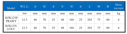 WYKONANIE: Zaczep wykonany z wysokiej jakości stali stopowej kutej matrycowo [42Cr MO], przystosowany do pracy w zakresie temperatur -40°C - +200°C bez obniżenia limitu obciążenia roboczego. Gatunek 80 (kuta i hartowana). Połączenie zaczepu bezpośrednio do naroża zaczepowego kontenera. Oferowany zaczep to: WERSJA "L"-lewa