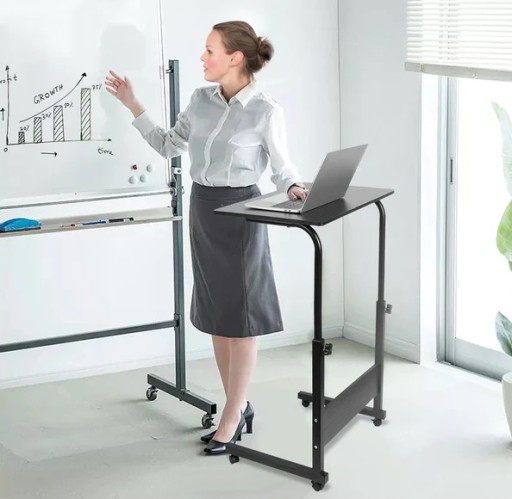 stolik jest umieszczony na specjalnie zaprojektowym stelażu pozwalającym na wygodne korzystanie z niego nawet w łóżku. Cztery kółka u podstawy pozwalają na szybkie i bezpieczne przemieszczanie całości. Aby zablokować kółka w stoliku wystarczy wcisnąć blokadę. Kółka można bardzo szybko zdementować. Stolik sprawdzi się idealnie zarówno w salonie, sypialni, czy kuchni. Bardzo dużym atutem naszego stolika jest regulowana wysokość, dzięki czemu możesz go dostosować do swoich preferencji.