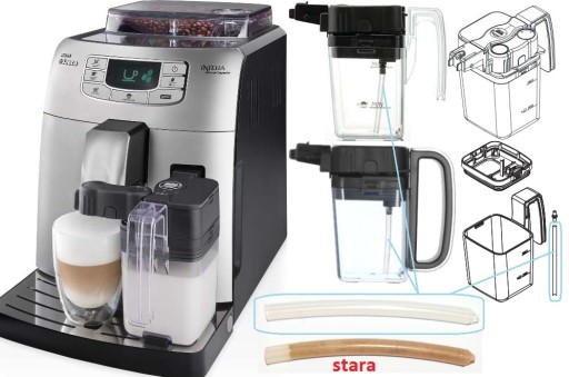 Wężyk pasuje do dwóch rodzaju zbiorników na mleko nr kat. Saeco 421944054802, Saeco 996530072643, Saeco 996530072682, Saeco 11029882, które występują w ciśnieniowym ekspresie do kawy Philips Saeco ,Gaggia nw: