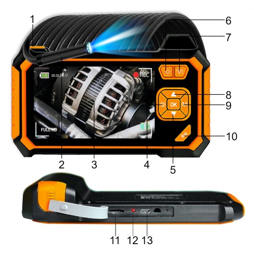 Najnowszej generacji kamera inspekcyjna z własnym ekranem na którym wyświetlany jest na bieżąco podgląd z kamery w najwyższej jakości HD. Urządzenie pozwala na nagrywanie filmów oraz robienie zdjęć. Urządzenie jest od razu gotowe do pracy i nie wymaga instalacji specjalnych aplikacji.