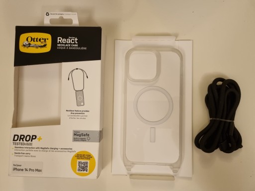 - Gdy nylonowa linka nie jest w użyciu, twój telefon przed upadkiem chroni opracowana przez firmę OtterBox godna zaufania technologia, ponieważ pokrowiec React Necklace z MagSafe spełnia normę wojskową (MIL-STD-810G 516.6).