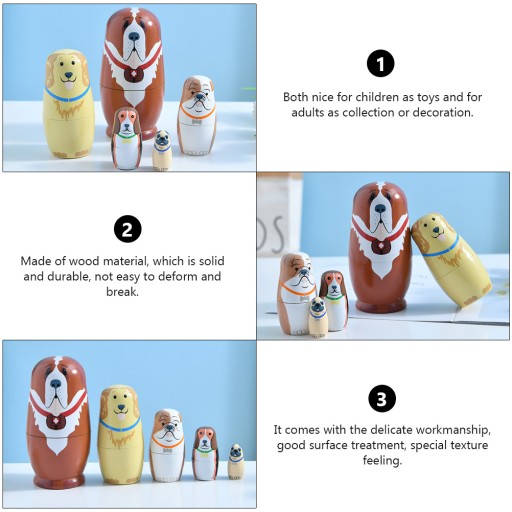 ✅Lalka Matryoshka z kreskówkowym wzorem dla psa, urocza i piękna, w 5 różnych rozmiarach, która jest zabawna do zabawy.