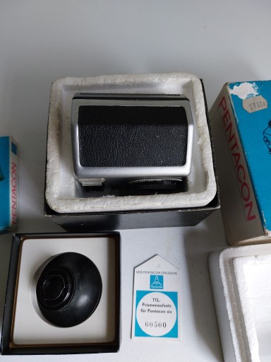 Pryzmat do aparatu Pentacon six w oryginalnym pudełku, po włożeniu bateri wskazówka reaguje na światło, zdjęcia przedstawiają sprzedawany produkt