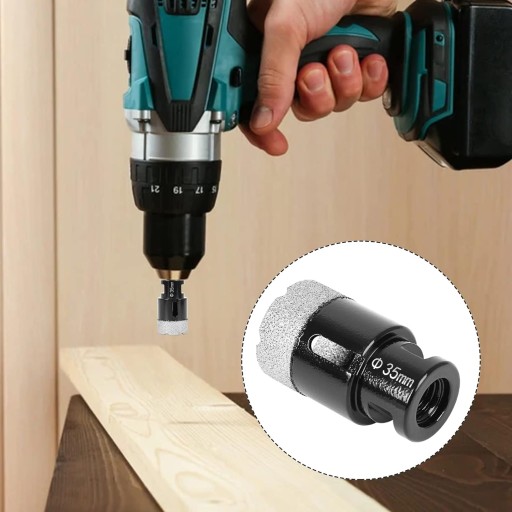 - Wyposażone w uchwyt z gwintem M14 umożliwiającym bezpośredni montaż na szlifierce kątowej. - Możliwość dokupienia adaptera HEX dla wkrętarki Otwornica diamentowa do precyzyjnego wiercenia 35mm
