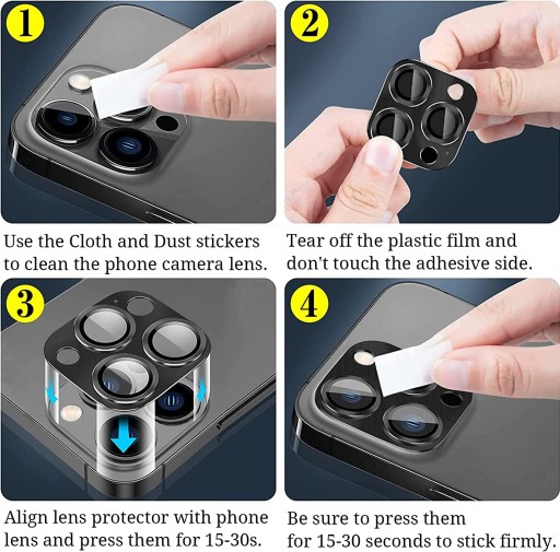 【Łatwy do zainstalowania po czyszczeniu】 Po wyczyszczeniu soczewek wyrównaj osłonę obiektywu z obiektywem telefonu i pamiętaj, aby nacisnąć je przez 15-30 sekund, aby mocno się przykleić.【Uprzejmie przypomina】 Proszę nie używać chusteczek nasączonych alkoholem podczas czyszczenia folii obiektywu, które mogą spowodować zamglenie filmu obiektywu aparatu.