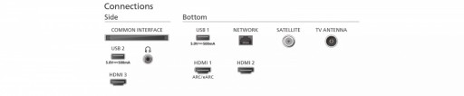- Gniazda we/wy: 1 x 3,5 mm minijack,3 x HDMI,2 x USB 2.0,1 x RJ-45 LAN,1 x Audio out,1 x Gniazdo CI/Cl+