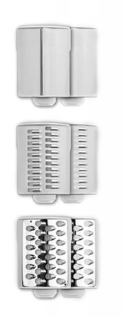 - Wydajne cięcie Ostre obrotowe ostrza tnące ze stali nierdzewnej 304 z trójwymiarową powierzchnią cięcia bębna i ulepszonym uchwytem, dzięki czemu cięcie jest 20 razy szybsze niż inne rozdrabniacze do sera.