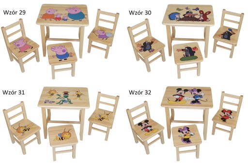 Stolik dla dzieci z krzesełkami drewniany, wzory z nadrukiem