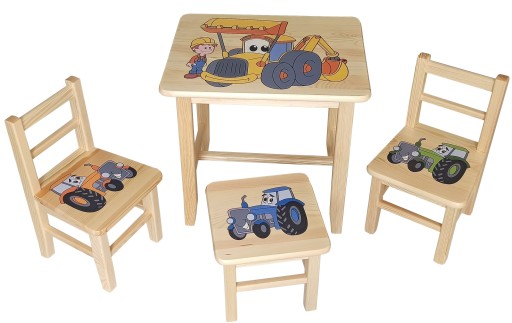 Zestaw mebli dla dzieci wykonany jest z litego drewna sosnowego z widoczną strukturą drewna. Całość bardzo precyzyjnie wykonana, dzięki czemu mebelki są trwałe, stabilne i bezpieczne. Solidna konstrukcja wykonana z wysokiej jakości lakierowanego drewna zapewnia trwałość na lata. Zaokrąglone krawędzie gwarantują bezpieczeństwo użytkowania. Kolorowy wzór/motyw wykonany techniką druku UV. Nadruk jest wysokiej jakości, wytrzymały i odporny na ścieranie. Meble zostały zaprojektowane prostym, nowoczesnym stylu, który idealnie dopasuje się do każdego pomieszczenia. Zestaw świetnie sprawdzi się w bawialni, pokoju dziecięcym.