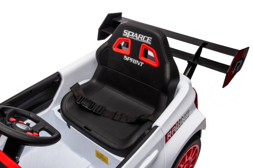 Pojazd posiada gustowny fotel z wysokim oparciem wyprofilowany tak, aby małemu kierowcy było jak najwygodniej. Bezpieczeństwo podczas jazdy zapewnią specjalne pasy i blokada zabezpieczająca drzwi przed otworzeniem. Opcja wolnego startu powoduje, że samochód nie zrywa przy ruszaniu i hamowaniu, ale stopniowo dostosowuje prędkość, przez co dziecko nie przestraszy się szarpnięć.