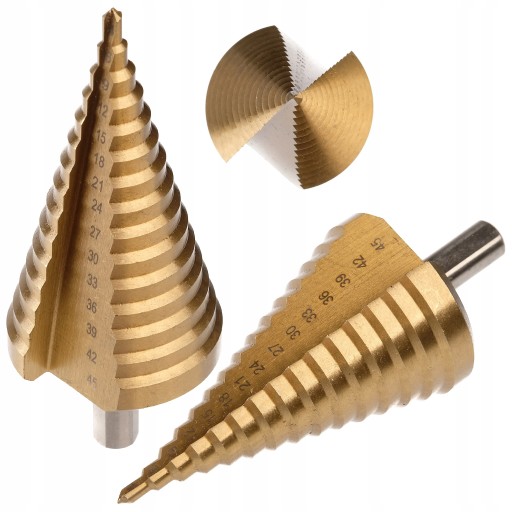 WIERTŁO STOŻKOWE STOPNIOWE STOPNIOWANE CHOINKOWE HSS TYTAN 4-45MM WIERTŁA