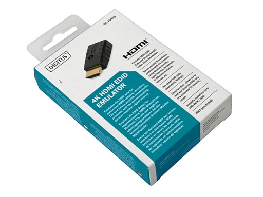 Emulator Digitus 4K HDMI EDID stale duplikuje podłączony monitor HDMI, dzięki czemu źródło sygnału nie zmienia się ani nie rozłącza nawet w przypadku przerwania połączenia. Posiada domyślnie ustawione dane EDID (rozdzielczości / synchronizacja czasu), można je znaleźć w instrukcji obsługi. Jeśli brakuje danych EDID pojedynczego monitora/wyświetlacza, można je szybko i łatwo odczytać i sklonować za pomocą praktycznej funkcji klonowania. Emulator wspiera rozdzielczości do UHD 4K2K / 60 Hz. Emulator jest idealnym rozwiązaniem przy zastosowaniach z przedłużaczami, rozdzielaczami, przełącznikami lub konwerterami HDMI.