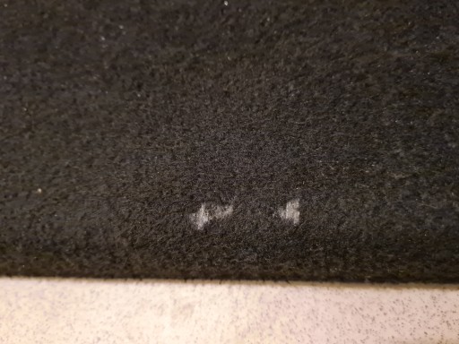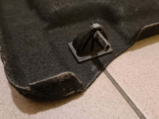 Oryginalna (OE) półka bagażnika z Renault Trafic, data produkcji: 2018. Kolor: czarny. Półka ma uszkodzony jeden narożnik (jest pęknięty) oraz posiada ślady użytkowania (przetarcia, zabrudzenia).