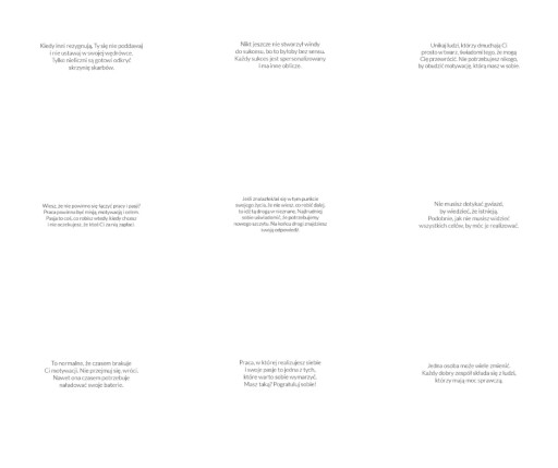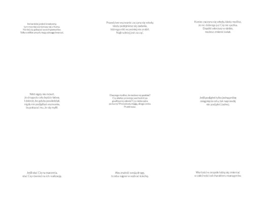 Na tej aukcji kupujesz krówki motywacyjne dwustronne z Naszymi przykładowymi tekstami, jeśli chcesz umieścić swoje teksty, jak najbardziej jest taka możliwość :) Proszę podesłać do nas plik z tekstami po zakupie. Możemy też stworzyć teksty spersonalizowane specjalnie dla Ciebie!