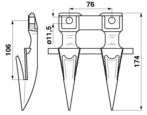 Długość (mm) : 174 Ilość otworów mocujących (szt.) : 2 Średnica otworów mocujących (mm) : 11,5