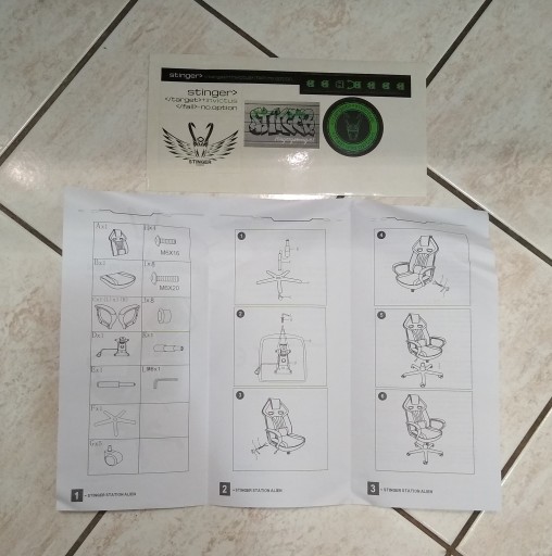 Mankamentami są brak dwóch wkrętów oraz niewielkie zadrapania z tyłu oparcia - zaznaczone niebieskimi kółkami i widoczne na zdjęciach poniżej.