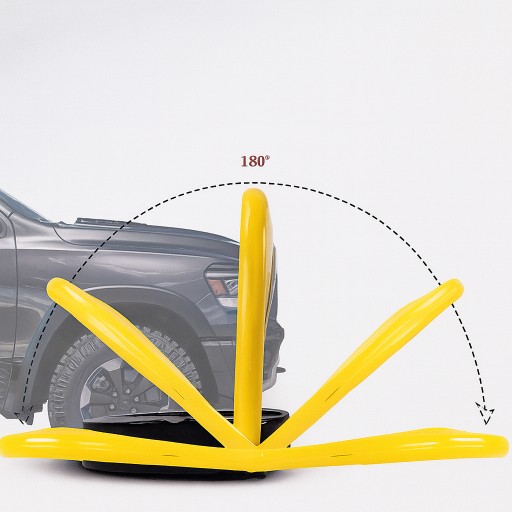 - Konstrukcja antykolizyjna - gdy ramie blokady napotka przeszkodę w postaci samochodu lub innego przedmiotu utrudniającego jej rozłożenie, usłyszysz alarm dźwiękowy. Blokada rozkłada się w zakresie 180 ° w lewo i prawo.