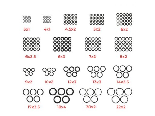 ✅ Kompletny Zestaw Rozmiarów: Posiadanie 225 sztuk oringów w 18 rozmiarach gwarantuje, że znajdziesz odpowiedni oring do wielu zastosowań.