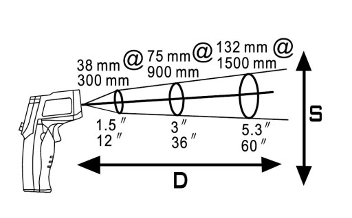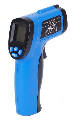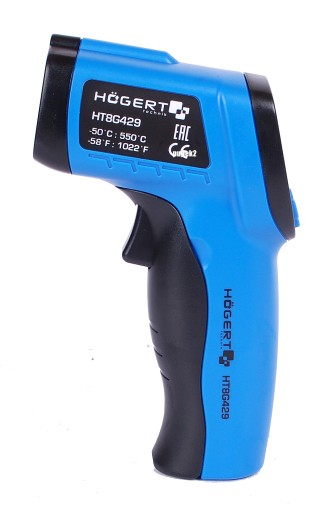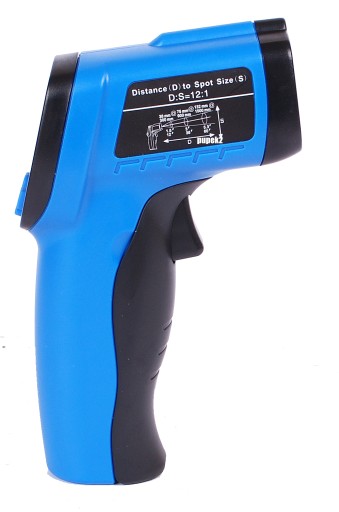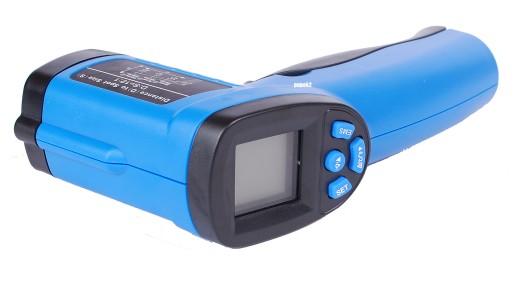 Cyfrowy termometr przeznaczony do bezkontaktowego pomiaru temperatury przedmiotów zlokalizowanych poza zasiegiem, w znacznej odległosci, niebezpiecznych w dotyku, trudno dostepnych, badz pozostajacych w ruchu. Stosowany głównie w profesjonalnych warsztatach i serwisach samochodowych, w przemysle, branzy budowlanej czy w gastronomii.