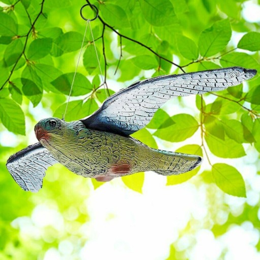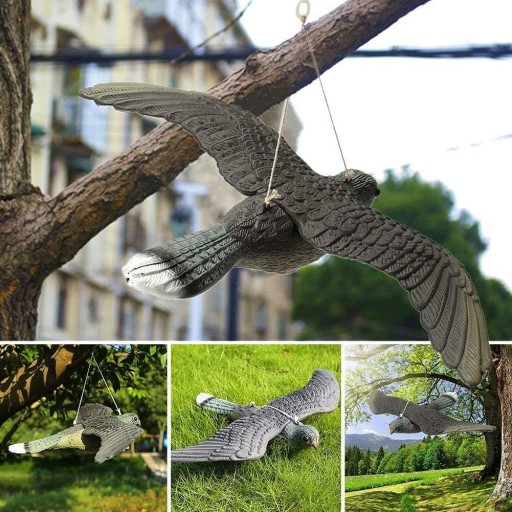 ✅ Sztuczny sokół o realistycznym wyglądzie i rozmiarze, pełniący rolę odstraszacza ptaków (gołębi, szpaków itp.) żerujących na działce lub w ogrodzie.
