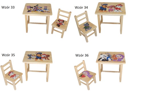 Zestaw mebli dla dzieci wykonany jest z litego drewna sosnowego z widoczną strukturą drewna. Całość bardzo precyzyjnie wykonana, dzięki czemu mebelki są trwałe, stabilne i bezpieczne. Solidna konstrukcja wykonana z wysokiej jakości lakierowanego drewna zapewnia trwałość na lata. Zaokrąglone krawędzie gwarantują bezpieczeństwo użytkowania. Kolorowy wzór/motyw wykonany techniką druku UV. Nadruk jest wysokiej jakości, wytrzymały i odporny na ścieranie. Meble zostały zaprojektowane prostym, nowoczesnym stylu, który idealnie dopasuje się do każdego pomieszczenia. Zestaw świetnie sprawdzi się w bawialni, pokoju dziecięcym.