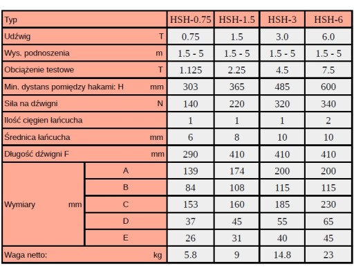 Wciągnik posiada utwardzony łańcuch G80 8,0 x 24mm testowany przy obciążeniu 2250 kg.