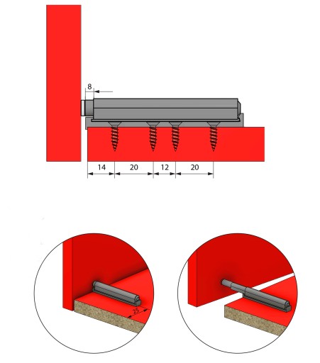 Jest to idealne rozwiązanie do otwierania szuflad i frontów meblowych bez uchwytów. Umożliwia sprawne otwarcie frontu poprzez jego naciśnięcie. Odbojnik wygląda bardzo estetycznie, dzięki czemu wkomponuje się do każdej zabudowy meblowej. Znajduje swoje zastosowanie we frontach push to open ze standardowymi zawiasami mechanicznymi.