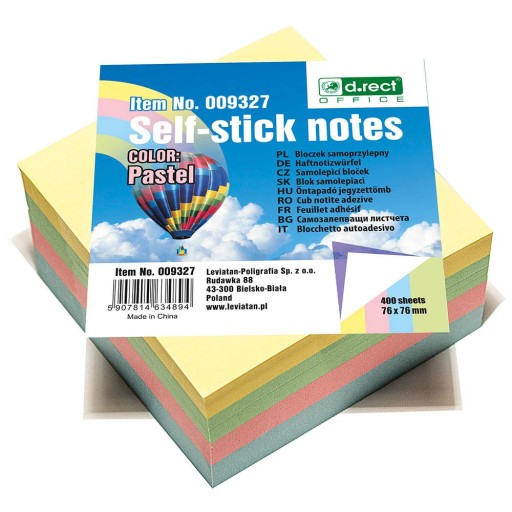 Bloczek samoprzylepny jest idealny do sporządzania notatek czy pozostawiania krótkich wiadomości i przypomnień. Pastelowe kolory są świetną alternatywą dla osób wolących delikatne odcienie od jaskrawych kolorów neonowych. Znajdzie swoje zastosowanie w biurze, domu, a także szkole. Karteczki można wielokrotnie przyklejać i odklejać. Bloczek o wymiarach: 76 x 76 mm zawiera 400 karteczek z papieru wysokiej jakości w kilku kolorach.