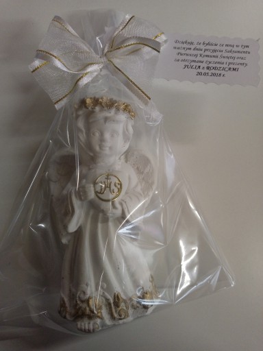 Aniołki znakomicie nadają się jako podziękowania dla gości z okazji Komunii Św. i są znakomitą pamiątką z tej pięknej uroczystości.