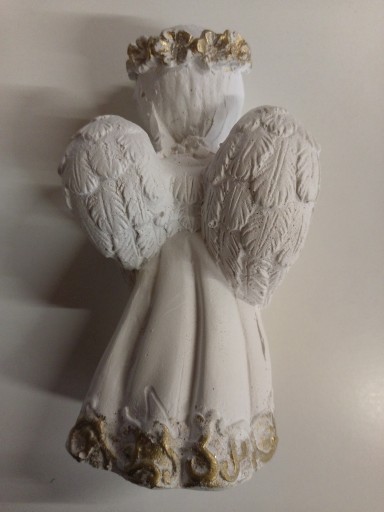 Do kupienia jest aniołek - Pamiątka I Komunii Św., wykonany z gipsu, wysokość 11 cm, pozłacany.