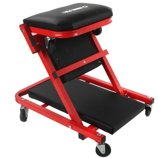 Dodatkowym atutem leżanki warsztatowej jest możliwość złożenie i używania jej jako taboretu warsztatowego.
