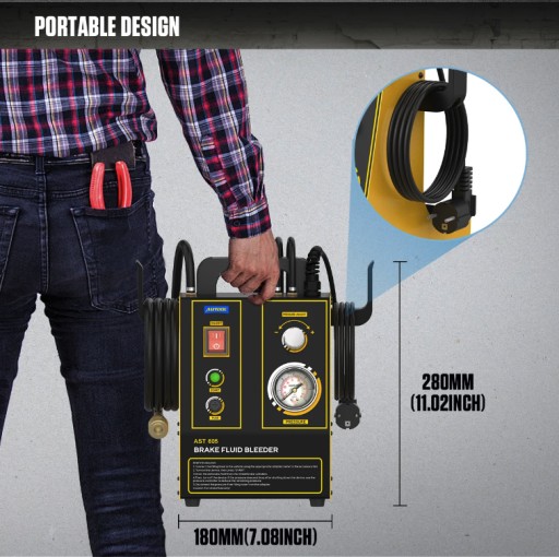 Wbudowany system monitorowania ciśnienia. Pompa do napełniania zbiornika płynu hamulcowego jest wyposażona w urządzenie do monitorowania ciśnienia. Możesz regulować ciśnienie AUTOOL AST605 za pomocą regulowanego pokrętła, zakres ciśnienia wynosi 0, 6-3, 0 BAR.