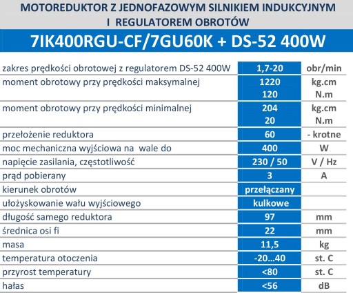Motoreduktor jednofazowy z regulatorem, typ 7IK400R-60 + DS52-400W