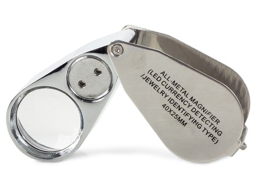 СКЛАДНАЯ КАРМАННАЯ ЛУПА С 2 СВЕТОДИОДАМИ УФ-МЕТАЛЛ, 40x