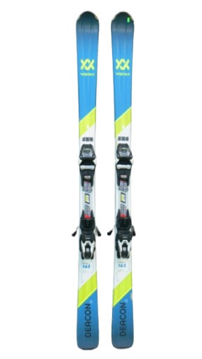 Narty używane( nr kat.190/23) VOLKL DEACON 7.4 dł. 163cm ; taliowanie 118-74-103, promień skrętu 14,5m ; z wiązaniami MARKER FDT10(zakres 3 - 10), na dł. skorupy buta 260 - 388mm.