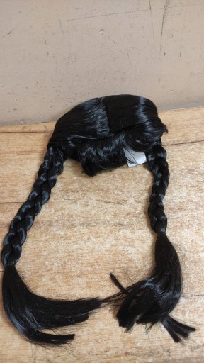 Peruka umożliwia pełne wcielenie sie w postać. Włosy są błyszczące i posiadają uplecione warkocze.