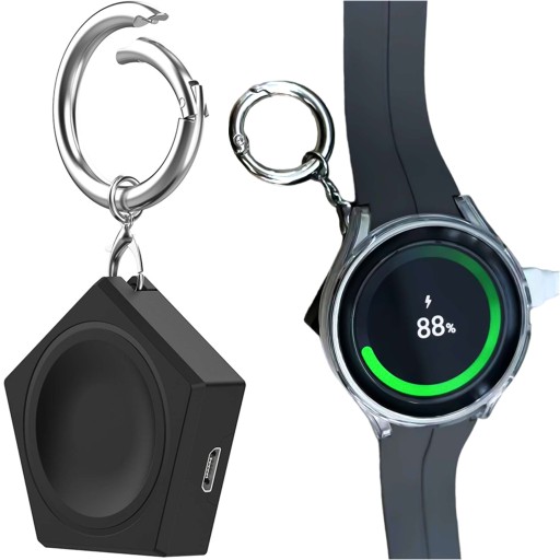 ✅ Brelok umożliwia ładowanie zegarka Galaxy Watch poprzez kabel USB-C. Dodatkowo, posiada złączeMICRO-USB, umożliwiając ładowanie alternatywne.