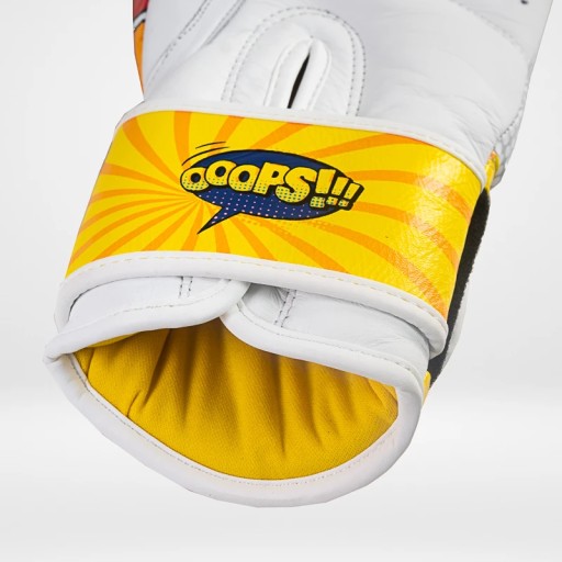 Komiksowe wstawki to coś dla tych, którzy chcą się wyróżnić, ale na pewno nie kosztem jakości. 100% prawdziwa skóra licowa sprawia, że Boxing Pro Semtex są wyjątkowo trwałe i wytrzymają nawet najbardziej wymagające treningi. Choć na pierwszy rzut oka widzisz eksplozje i fajerwerki, to te rękawice dadzą Ci bezpieczeństwo.