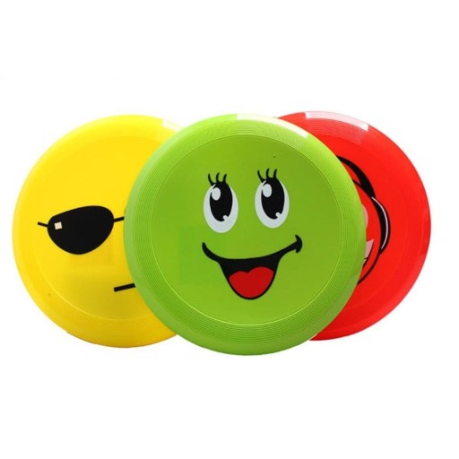 Latający dysk z minką znany jako frisbee do zabawy na podwórku czy na plaży. Kształt talerza oraz zagięte końcówki sprawiają iż dysk lata po rzuceniu go w przód. Wykonany z tworzywa sztucznego. Średnica talerza to 21 cm. Zabawa frisbee polega na rzucaniu i łapaniu pomiędzy dwiema osobami lub grupą osób. Dostępne są trzy kolory: żółty, zielony i czerwony.