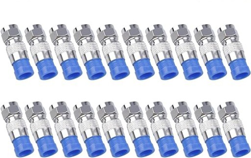 【ZŁĄCZE KOMPRESYJNE F】 Złącza kompresyjne typu F są idealne do kabla koncentrycznego rg59 rg6, całkowicie metalowa konstrukcja, odporna na korozję niklowana, zapewnia profesjonalne* połączenia dla kabla koncentrycznego rg6. Odpowiednie do użytku wewnętrznego i zewnętrznego.